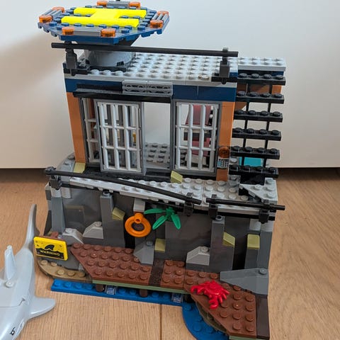 LEGO City fængselsø legesæt med bygning, køretøjer og minifigurer