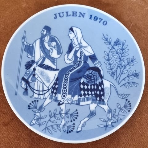 Royal Copenhagen juleplatte 1974 porcelæn blå-hvid