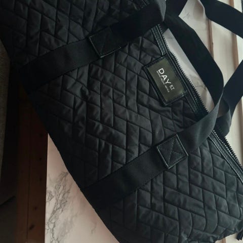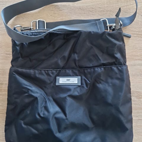 Day RE-Logo Band Cross bag i genanvendt materiale, designet med guld detaljer, justerbar og aftagelig crossbody logorem, samt logohåndtag. Tasken har et stort lynlåsrum og en udvendig lynlåslomme.