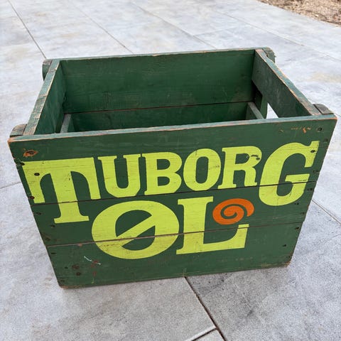 Kongens Bryghus Wiibroe Tuborg ølkasser træ blå grøn