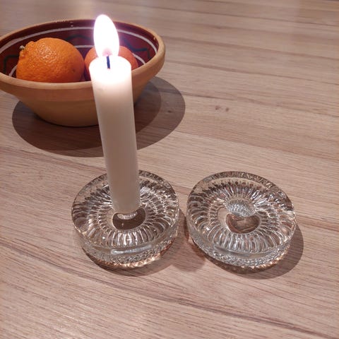 Lysestage, Nybro, 2 stk. flotte og specielle lysestager til hver 3 lange lys. Fra det svenske glasværk Nybro.