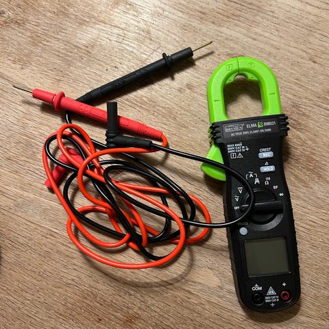 Oyo FME 5 multimeter med digitale målefunktioner. Håndholdt model i blå plast med display øverst og drejeknap til valg af måleområde. Inkluderer røde og sorte måleledninger. Egnet til måling af blandt andet spænding, strøm og modstand i elektriske kredsløb i hobby- og gør-det-selv-sammenhænge.