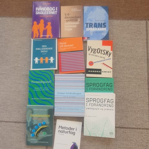 Sælger ud af en større bogsamling (21 unikke titler) fra pædagoguddannelsen og tekstilformidler-uddannelsen samt diverse livsstilsbøger. Alle bøger er i god stand.