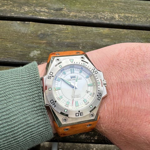 Original Linde Werdelin stor boks med yderkasse, inderkasse, kasse til dokumenter og remme, LW pose, usb kort, (vist nok til Oktopus), delvist udfyldt certifikat, hvor serienummer er forsøgt slettet.