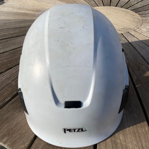 Kask hjelm i limegrøn farve med hvide og sølvfarvede refleksdetaljer. Hjelmen har flere ventilationsåbninger og indvendig polstring for øget komfort. Justerbar rem under hagen sikrer korrekt pasform. Velegnet til klatring og lignende aktiviteter, hvor der kræves hovedbeskyttelse. Giv et bud. Spar 50,- ved afhentning.