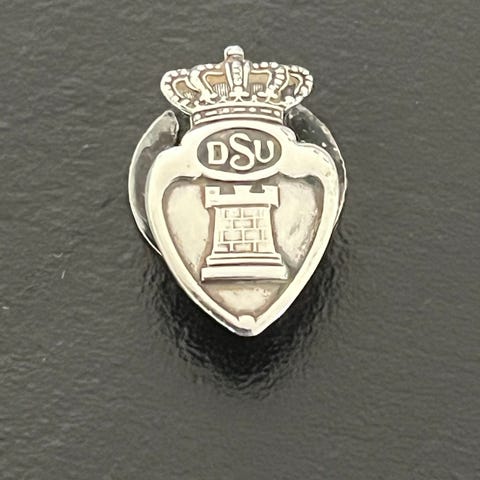 Badge som egner sig til samling, display, rekvisit eller dekoration. Bagsiden mangler metalnålen, så den fungerer bedst som samlerobjekt, rekvisit eller til montering efter eget ønske.
