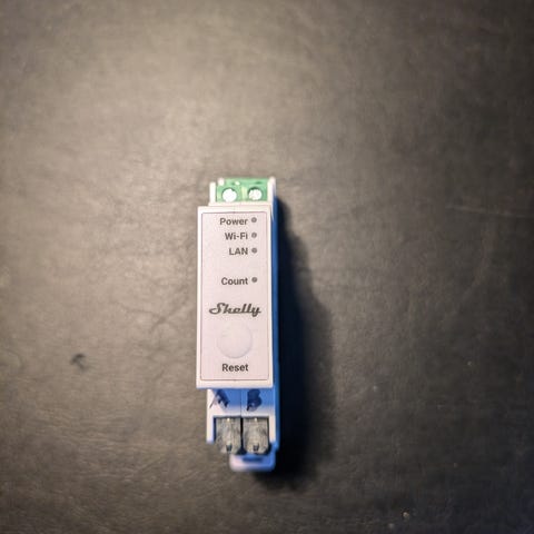 Shelly PM Mini smart strømmåler 16A med WiFi. Enheden er beregnet til måling af strømforbrug op til 16 ampere og kan indgå i et smart home-setup via trådløs netværksforbindelse. Velegnet til installation i elinstallationer, hvor der ønskes overvågning af energiforbrug på enkelte kredse eller apparater.