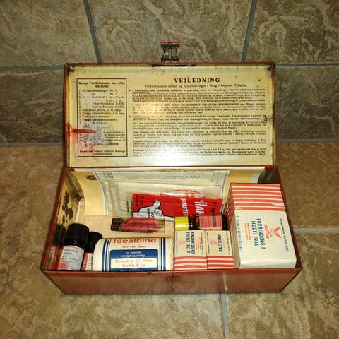 Gammel falck nød - forbindingskasse fra ikke ryger hjem sælges og den kan sendes