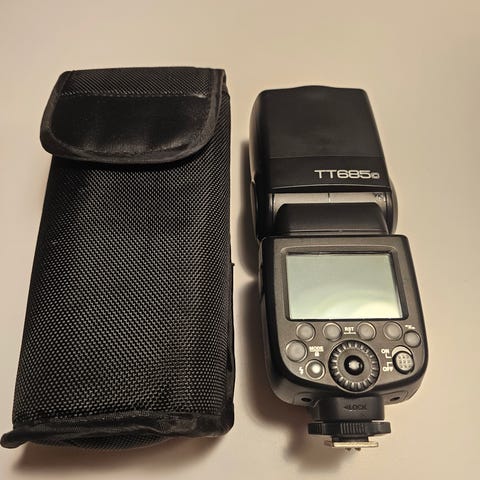 Godox TT350S flash til Sony-kamera, kun brugt få gange og står næsten som ny.