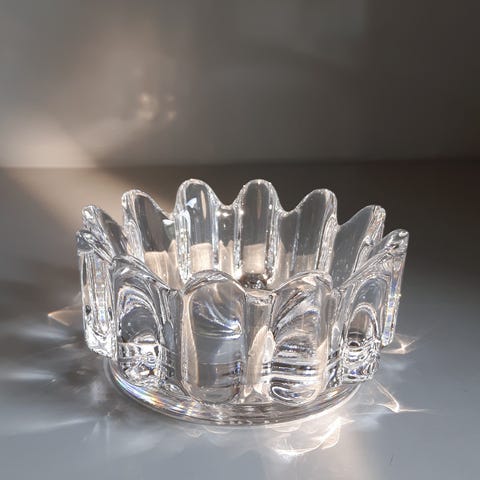 Tyk-lækker 'bling-bling' krystalskål m. ualmindeligt glade ansigter:) V - form ymerskål form