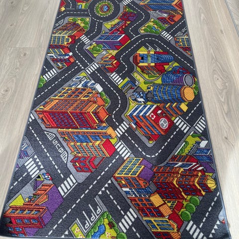 Bil tæppe i linoleum til legetøjsbiler og dyr .