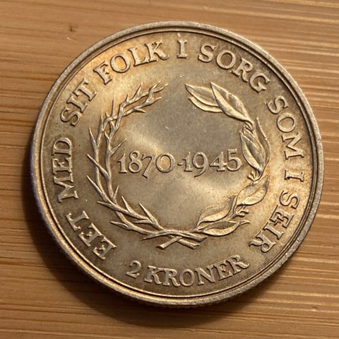 To krone fra 1916 i sølv. 15 g.