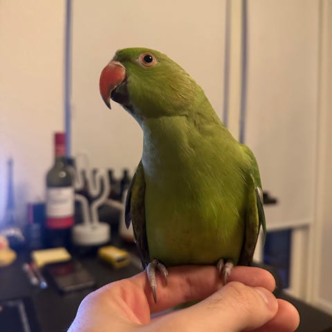 Et par alexanderparakitter – én hun og én han, ca. 3 år gamle.