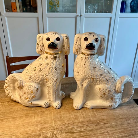 Antikt par Staffordshire hunde i fajance - 26 cm