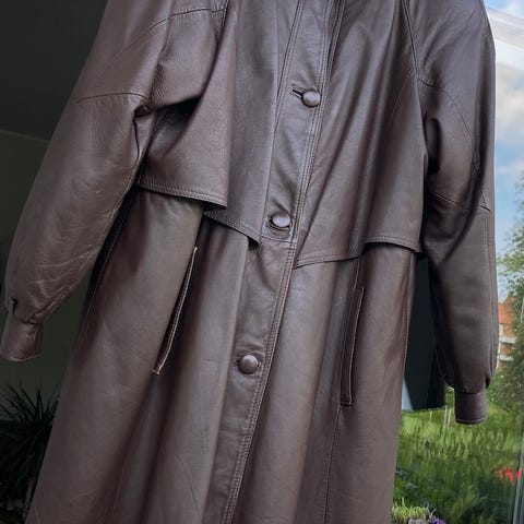 Ca. 69 cm lang og 42 cm over skuldrene. Ærmerne måler ca 59 cm.