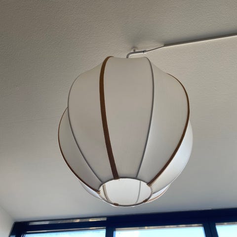 Designet er inspireret af asiatisk håndværk og passer perfekt over spisebordet, i stuen eller i et soveværelse. Lampen fungerer både som belysning og som et dekorativt designobjekt i rummet. Den er lavet med silke.