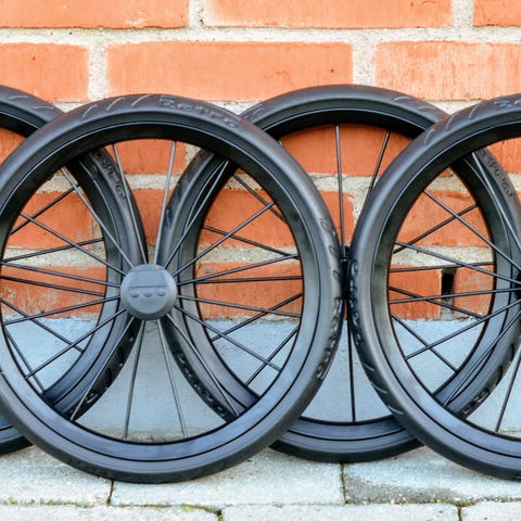 Sæt af 4 stk. nye barnevognshjul, klikhjul, 3 prikker, 14" lufthjul