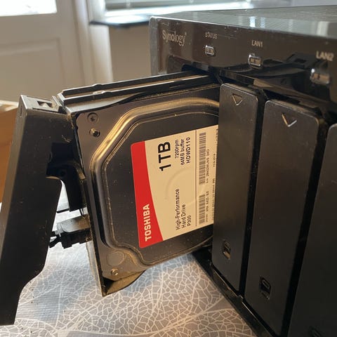 Synology DiskStation DS1010+ NAS med 5 drevpladser i sort kabinet. Enheden er beregnet til montering af op til fem interne harddiske (3,5" eller 2,5" med passende skinner, afhængigt af model). Bagsiden har to blæsere til køling, strømtilslutning samt netværksporte til tilslutning til router eller switch. NAS’en kan anvendes til central lagring af filer, backup, medieserver eller fildeling i hjemmet eller på mindre kontorer, afhængigt af konfiguration og installerede diske. Ca.2010 med diske fra 2012/13. 3x4tb og 2x2tb diske er med. 2 ekstra nas DS1010 hvor den ene ikke har strømf. Og den anden har fejl i power knap. De kan bruges som reserve.