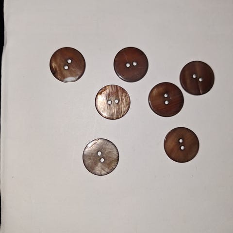 Knapper, 2 stk. i brun farve, Diameter: 2,7 cm og 2,3 cm, Pris: 7 kr.