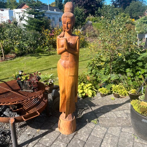 STOR FIGUR AF ASIATISK KVINDE, TRÆ, 100 år gl.
