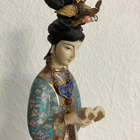 STOR FIGUR AF ASIATISK KVINDE, TRÆ, 100 år gl., FLOT STOR FIGUR I TRÆ AF ASIATISK (KINESISK) KVINDE.