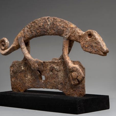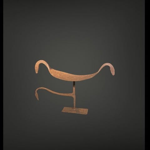 Alterstift memorial, Asen (107 cm), jernstøbt værk fra Fon-folket i Benin, originalt, provenance fra Manfred Schäfer-samlingen og inkluderet professionel stand. Klik på den blå "gå til varen" knap, for at købe eller byde på denne vare. Den samlede pris vil blive vist inden du afgiver dit bud.