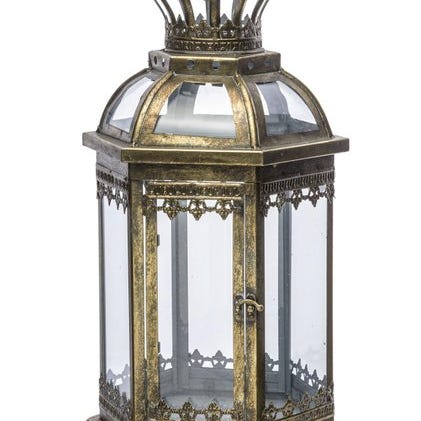 Dette er en meget smuk lanterne. Lavet af metal med en flot messingfinish, og særligt smuk, når der er et stort lys tændt.