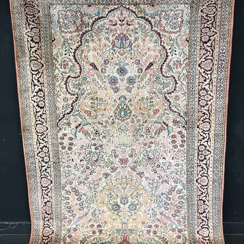 Dette tæppe imponerer med sin særdeles fine knudning, som er typisk for ægte kaschmir-silketæpper.