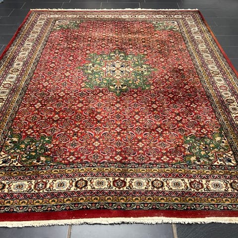 Håndvævet persisk tæppe i Ghom-design fra Indien, måler 177 × 120 cm, silke på bomuld, fremstillet i slutningen af det 20. århundrede. Klik på den blå "gå til varen" knap, for at købe eller byde på denne vare. Den samlede pris vil blive vist inden du afgiver dit bud.