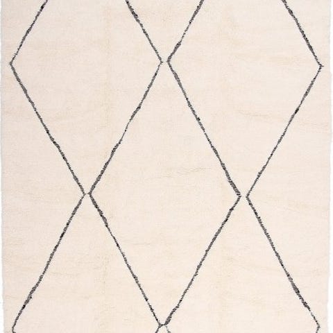 Denne ægte vintage marokkansk Berber tæppe er et Beni Ourain tæppe lavet af Atlas-stammerne i Marokko.