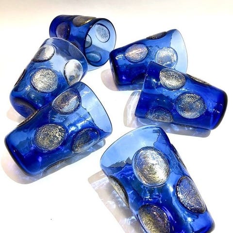 Sætte af 7 håndlavede Murano-glasbægre med karaffel, designet af Mariana Iskra for Ribes the Art of Glass, eksklusiv kollektion for Catawiki, Italien, 2010–2020, i fremragende stand, signeret, målene 8×8×10 cm, opvaskemaskine-sikre. Klik på den blå "gå til varen" knap, for at købe eller byde på denne vare. Den samlede pris vil blive vist inden du afgiver dit bud.
