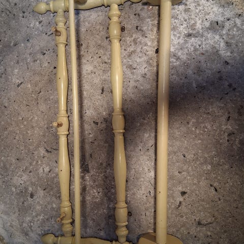 Særdeles sjælden sammenklappeligt træk-bøjle med seks kroge, lavet i Storbritannien, målene er 47,5 cm bred, 43,5 cm høj og 17,5 cm dyb, når de to øverste kroge trækkes frem; god stand med mindre tegn på ælde og pletter. Klik på den blå "gå til varen" knap, for at købe eller byde på denne vare. Den samlede pris vil blive vist inden du afgiver dit bud.