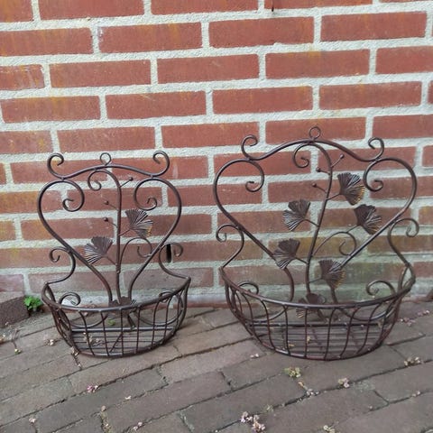En hængevare til blomster/plante i smedejern, fra 2020+ i beige og hvid, målene er H 98 cm x B 30 cm x D 30 cm, lavet i Belgien af jern og i god brugstilstand med mindre alders tegn. Klik på den blå "gå til varen" knap, for at købe eller byde på denne vare. Den samlede pris vil blive vist inden du afgiver dit bud.
