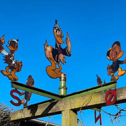Sjældent metal reklamevindvane fra P. Sluis foder til husdyr og fjerkræ, med en karakteristisk høne og bogstavet “S”. Hønen var det genkendelige logo af det hollandske firma P. Sluis, kendt for husdyr- og fjerkræfoder.
