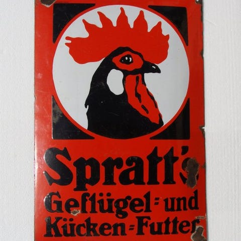 Sjælden hollandsk metallisk reklamevindfane til P. Sluis foder til husdyr og fugle, med en høne og bogstavet S, i metal, håndmalet i rød, sort og hvid, ca. 1930–1940, i dårlig stand med kraftig brug og manglende dele. Klik på den blå "gå til varen" knap, for at købe eller byde på denne vare. Den samlede pris vil blive vist inden du afgiver dit bud.