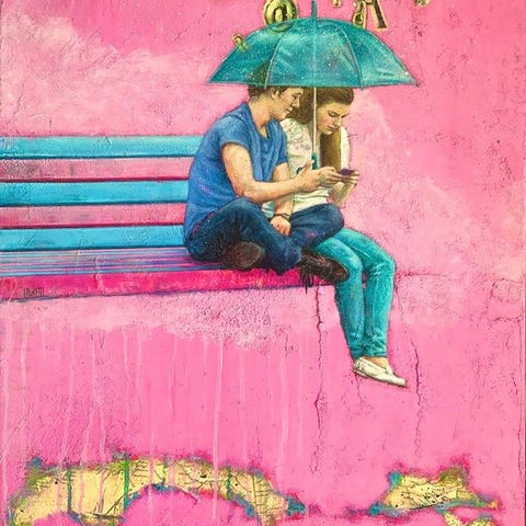 Olie på lærred signeret Mercier Marie (1965) Ecole des Beaux-Arts.