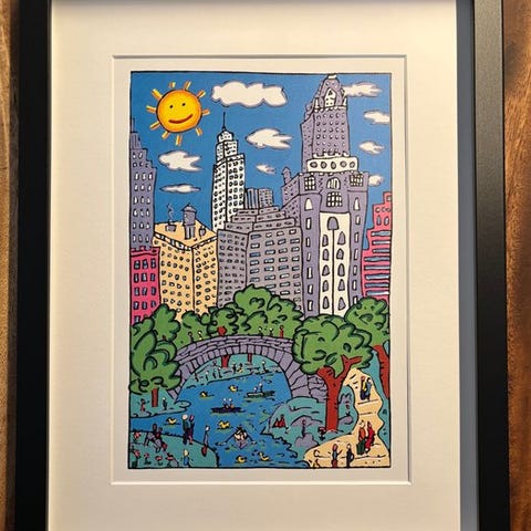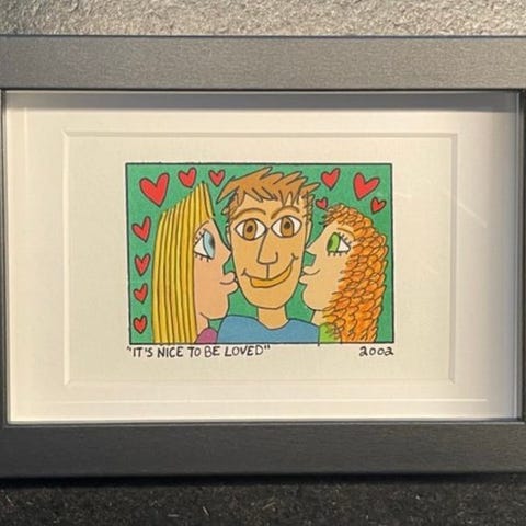 James Rizzi, Aiming for the Middle, digitaltryk i begrænset udgave indrammet i USA, periode 1990–2000, ramme ca. 23 × 32 × 3 cm, motiv ca. 16,2 × 10,8 cm, signeret i pladen, original licenseret tryk solgt af Galerie. Klik på den blå "gå til varen" knap, for at købe eller byde på denne vare. Den samlede pris vil blive vist inden du afgiver dit bud.