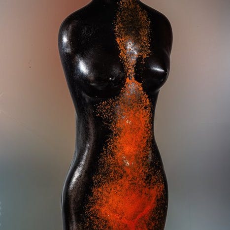 Henry Hallberg skandinavisk keramisk figurines fra 1960’erne, glasurkeramik med orange lava-glasur og sort lava-dekoration i bunden, stiliseret kvindefigur, højde ca. 21 cm, bredde 11 cm, dybde 10 cm, oprindelse Danmark, fremragende stand. Klik på den blå "gå til varen" knap, for at købe eller byde på denne vare. Den samlede pris vil blive vist inden du afgiver dit bud.