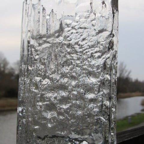 Ikonisk finsk kunstglas-vase fra midten af det 20. århundrede designet af Timo Sarpaneva til Iittala, kendt som 'Bird' eller 'Lintupullo' (fugleflaske) modellen.