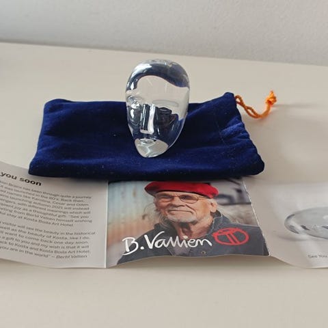 Den glas-skulptur, som vises på billedet, er „Brains” (Mózgi), af den kendte svenske kunstner Bertil Vallien for glasværket Kosta Boda.