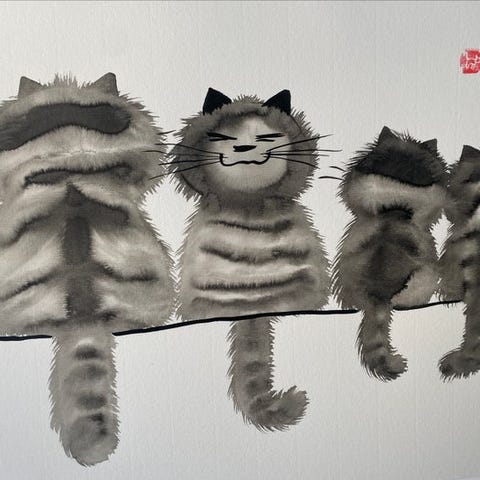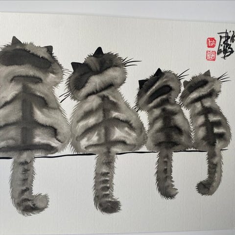 Tegning, original i kinesisk blæk på ru papir, limet (Canson), håndsigneret, format 40 x 30 cm
