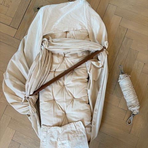 Vi sælger vores Moonboon slyngevugge med motor. Den har været flittigt brugt og har hjulpet mange lure på vej 💛
