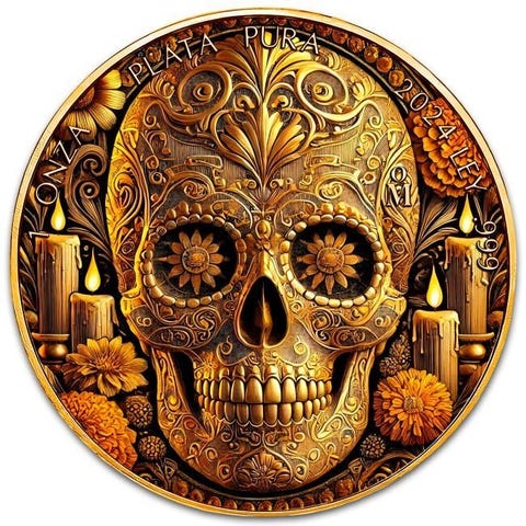 2024 1 oz mexicansk Libertad Quetzalcóatl sølvmønt, .999 fin sølv, farvet af tredjepart med 24k guldforgyldning, diameter 40 mm, oplag 100 stk, med certifikat og gaveæske. Klik på den blå "gå til varen" knap, for at købe eller byde på denne vare. Den samlede pris vil blive vist inden du afgiver dit bud.