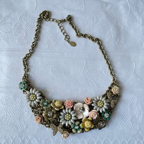 Accessorize halskæde til kvinde. Halskæden har geometriske vedhæng i flere lag og en kæde i metal-look. Længden kan justeres med forlængerkæde og karabinlås. Designet er velegnet som accessories til hverdag eller festligt brug.