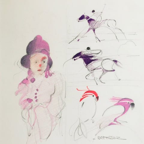 Robert Detheux (1932–2010), Grand Portrait Surréaliste, tegning i blandede teknikker på farvet papir, circa 2005, 55 cm × 44,5 cm, originaludgave, underskrevet af kunstneren, Belgien, god stand, ikke indrammet. Klik på den blå "gå til varen" knap, for at købe eller byde på denne vare. Den samlede pris vil blive vist inden du afgiver dit bud.