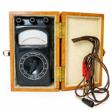 Upcyclet måleapparat fra Philips fra 1947, GM 2307. Nu egnet som bordlampe / skrivebordslampe, unik i sin slags lavet af Srapartist Ron Posthuma.