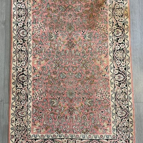Oprindelse: Indien; håndvævet orientalsk tæppe i Keshan-design, ca. 188 × 129 cm, silke på bomuld, i god tilstand med tegn på alder og brug. Klik på den blå "gå til varen" knap, for at købe eller byde på denne vare. Den samlede pris vil blive vist inden du afgiver dit bud.