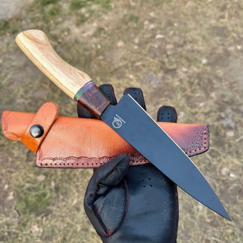bladmateriale . Damascus 10/95 15N20 buffalo horn med træ kniv med læderdække