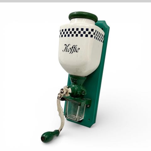 Denne type vægvæghaffekværn blev brugt til at male kaffebønner frisk i hjemlige omgivelser og daterer sandsynligvis fra begyndelsen eller midten af det 20. århundrede.