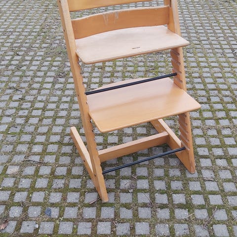 Højstol fra stokke i god stand, har kun lidt knubs.